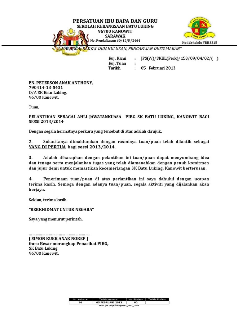 Contoh surat lantikan ajk pibg. Surat lantikan jawatankuasa keselamatan dan kesihatan new jkkp modul iks sektor surat perlantikan . Contoh surat perletakan jawatan (serta merta). Contoh surat lantikan ajk pibg. Garis panduan pemerkasaan jawatankuasa keselamatan dan.