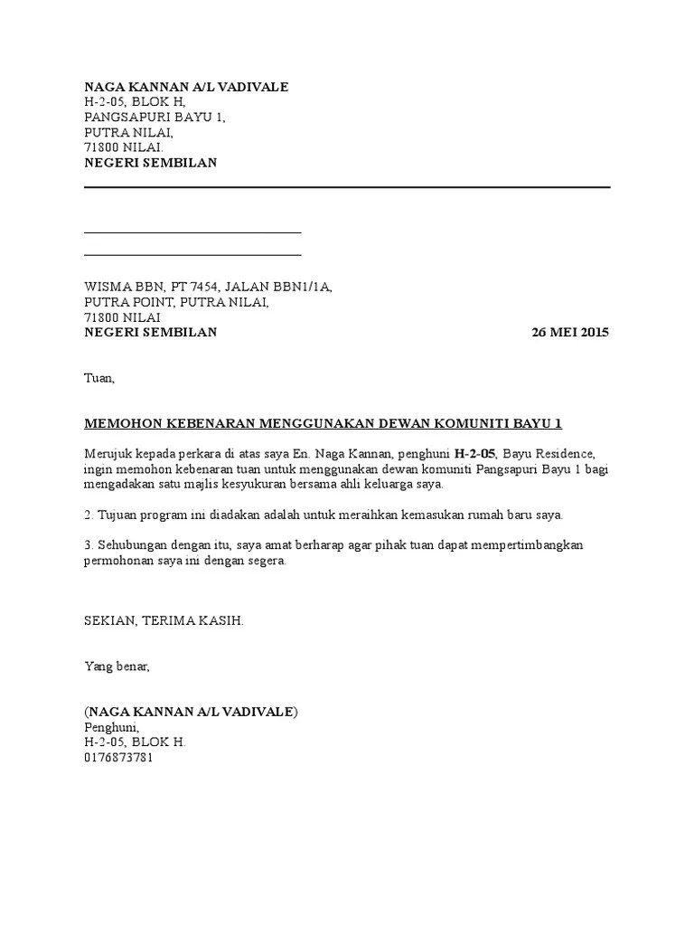 Contoh Surat Rasmi Untuk Memohon Kebenaran / Surat Mohon Masjid